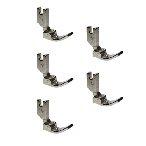 O kit de 05 Pé Calcador Pregar Vivo Cordão 3mm P-69LH 1/8 para Máquina Reta Industrial é ideal para aplicação precisa de vivo ou cordão em costuras. Desenvolvido para o lado esquerdo, oferece agilidade em projetos industriais e semi-industriais de costura.