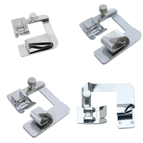 O Kit Sapata Calcador de Bainha de 25, 19,10 e 4,5mm é utilizada em máquinas de costura domésticas para facilitar a confecção de barras e bainhas estreitas com acabamento limpo e profissional. Compatível com modelos de haste larga e troca rápida.