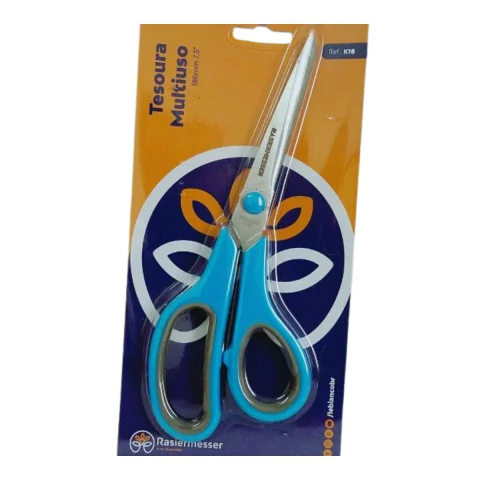 A Tesoura Multiuso K18 18.6cm Azul Céu é projetada para cortes precisos em uma ampla variedade de materiais, como tecido, papel, EVA e feltro. Seu cabo ergonômico proporciona conforto e praticidade, sendo ideal para trabalhos manuais, artesanato e costura.